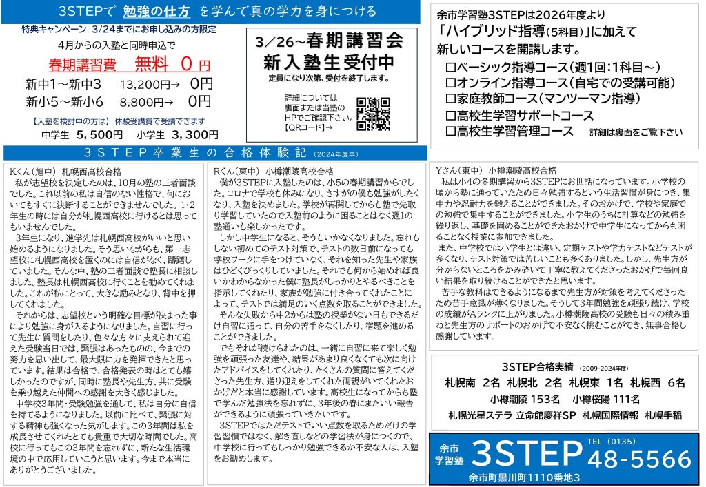 余市学習塾3STEPハイスクールリニューアル